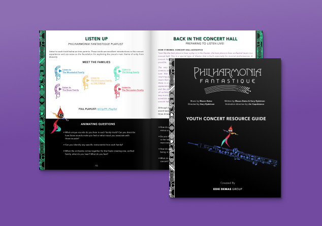 Designed to expand audience engagement for live performances of Philharmonia Fantastique, these resources present a wide variety of activities that may be used in both the general education and music classrooms, in after school settings, or at home. The materials in this guide support educators, students, families, and audience members alike.